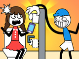 У грі «Головоломка з Палицею Злодія: Втеча Людини» ви знайомитеся з хитрим стікменом, який постійно потрапляє в безглузді халепи. Сьогодні він тягнеться до скарбів, іншим разом застрягає в пастці або намагається витягнути цуценя з небезпечного місця. Рівні подаються як короткі сценки, де відразу зрозуміло: щось пішло не так. Якщо вибрати правильний варіант, герой вибирається без проблем, а невдалі рішення часто закінчуються смішними і несподіваними моментами. Тут не потрібно поспішати — важливіше уважно дивитися на ситуацію і розуміти, що спрацює найкраще. На екрані завжди видно пастки, перешкоди і корисні предмети, тому результат залежить від того, в якому порядку ви будете діяти. Одні завдання пов'язані з втечею, інші з пошуком вірного шляху або безпечного рішення.