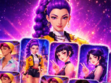 Вам потрібно уважно вивчати поле і знаходити пари плиток з однаковими зображеннями стильних мисливиць і демонів. На картках ви зустрінете дівчат-айдолів у модних костюмах, з кольоровими косичками, мікрофонами та загадковими магічними символами. Вибирати можна тільки відкриті елементи, які не затиснуті іншими деталями з боків або зверху. Проходьте рівень за рівнем, очищаючи простір від фіолетових, рожевих і блакитних плиток, щоб відкрити нові сценічні образи героїнь. З кожним етапом плиток маджонга з учасницями K-pop стає все більше, щоб потренувати вашу увагу. Зберіть усі комбінації з улюблених героїнь і допоможіть групі HUNTR/X провести ідеальний концерт, перемігши хаос з плиток своїм інтелектом.